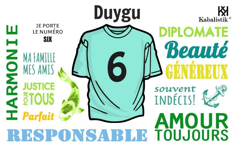 La numérologie attribue le nombre 6 au prénom Duygu. Découvrez sur cette page comment, et quelle signification y est associée.