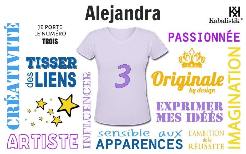 La numérologie attribue le nombre 3 au prénom Alejandra. Découvrez sur cette page comment, et quelle signification y est associée.