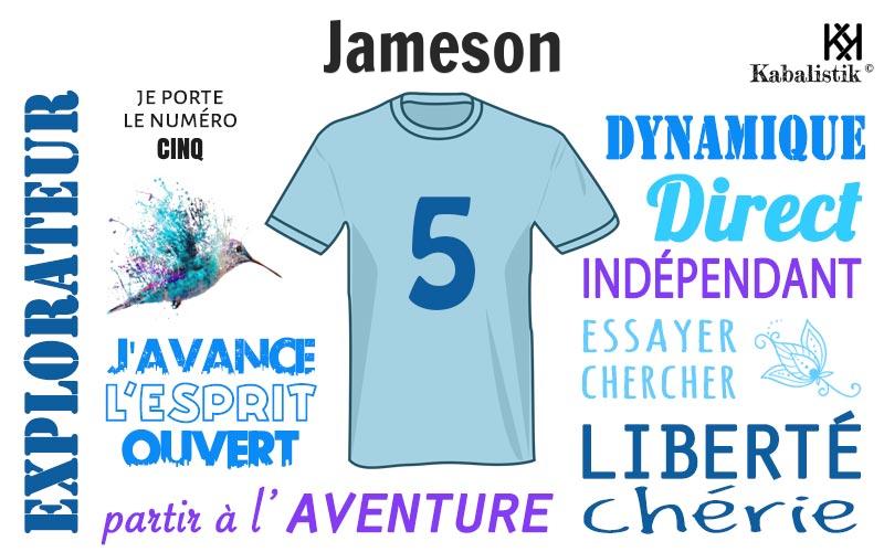 La numérologie attribue le nombre 5 au prénom Jameson. Découvrez sur cette page comment, et quelle signification y est associée.