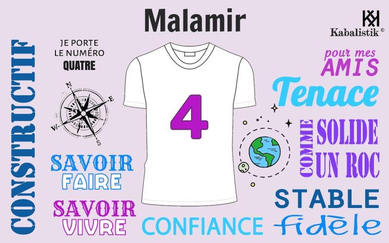 La numérologie attribue le nombre 4 au prénom Malamir. Découvrez sur cette page comment, et quelle signification y est associée.