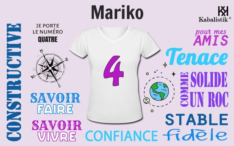La numérologie attribue le nombre 4 au prénom Mariko. Découvrez sur cette page comment, et quelle signification y est associée.