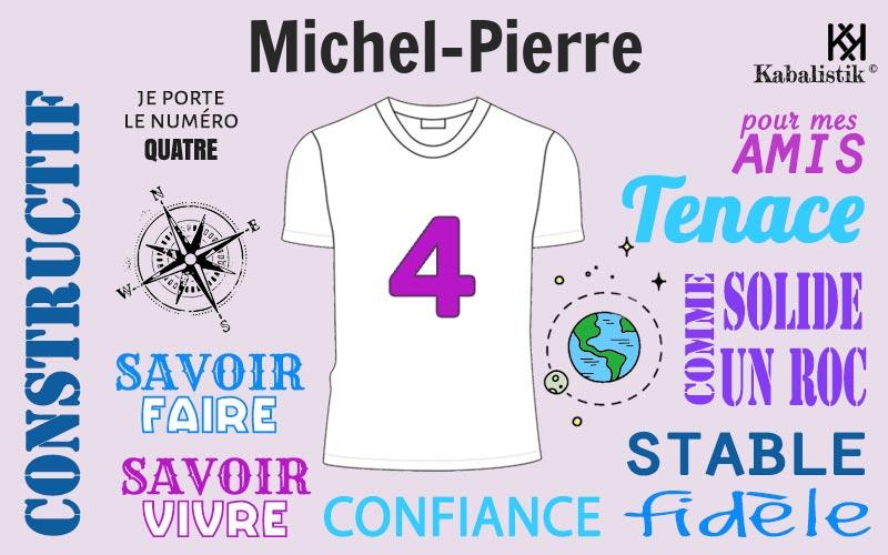 La numérologie attribue le nombre 4 au prénom Michel-Pierre. Découvrez sur cette page comment, et quelle signification y est associée.