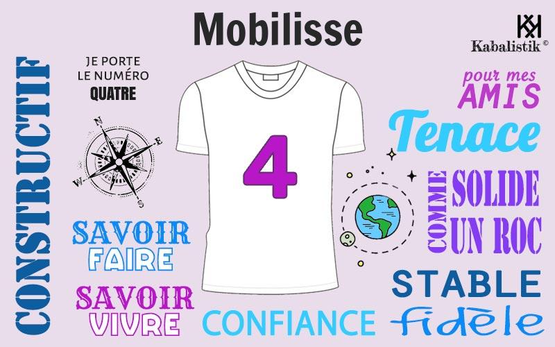 La numérologie attribue le nombre 4 au prénom Mobilisse. Découvrez sur cette page comment, et quelle signification y est associée.