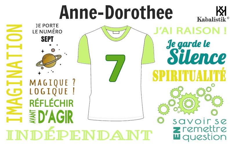 La numérologie attribue le nombre 7 au prénom Anne-Dorothee. Découvrez sur cette page comment, et quelle signification y est associée.
