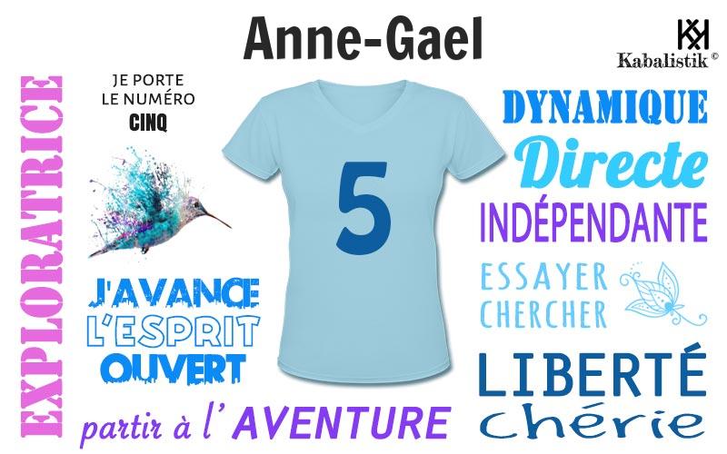 La numérologie attribue le nombre 5 au prénom Anne-Gael. Découvrez sur cette page comment, et quelle signification y est associée.