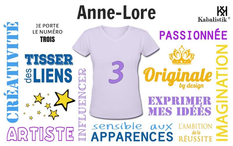 La numérologie attribue le nombre 3 au prénom Anne-Lore. Découvrez sur cette page comment, et quelle signification y est associée.