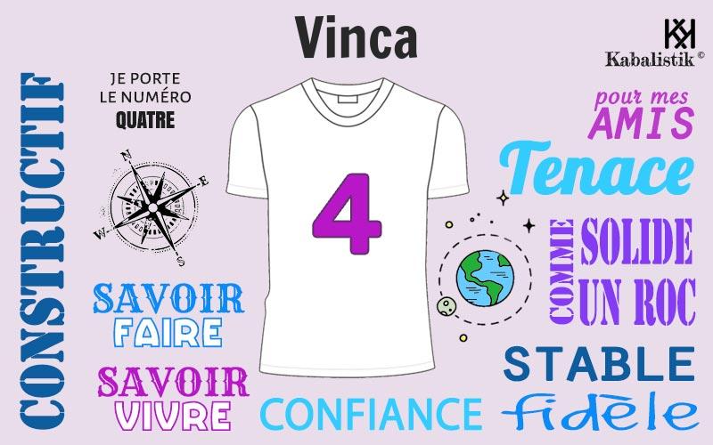 La numérologie attribue le nombre 4 au prénom Vinca. Découvrez sur cette page comment, et quelle signification y est associée.