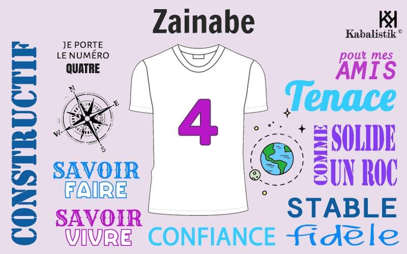 La numérologie attribue le nombre 4 au prénom Zainabe. Découvrez sur cette page comment, et quelle signification y est associée.