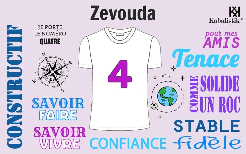 La numérologie attribue le nombre 4 au prénom Zevouda. Découvrez sur cette page comment, et quelle signification y est associée.
