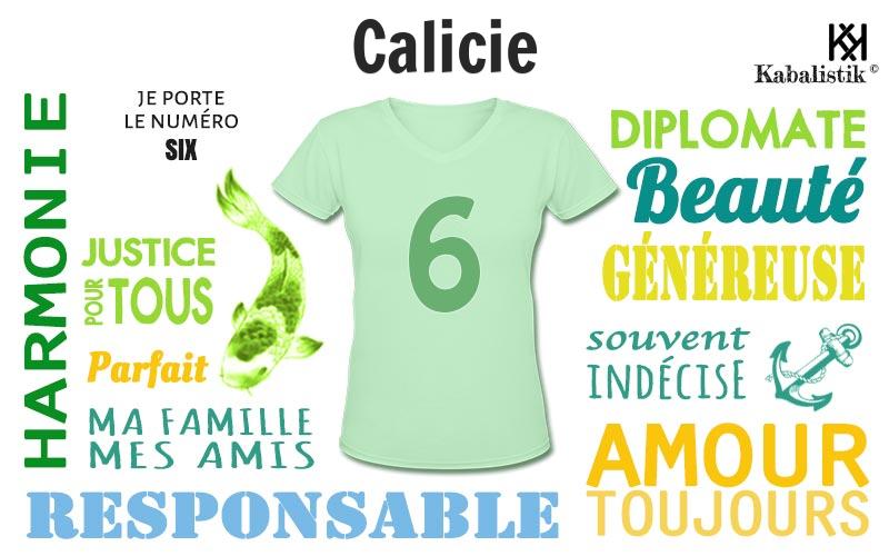 La numérologie attribue le nombre 6 au prénom Calicie. Découvrez sur cette page comment, et quelle signification y est associée.