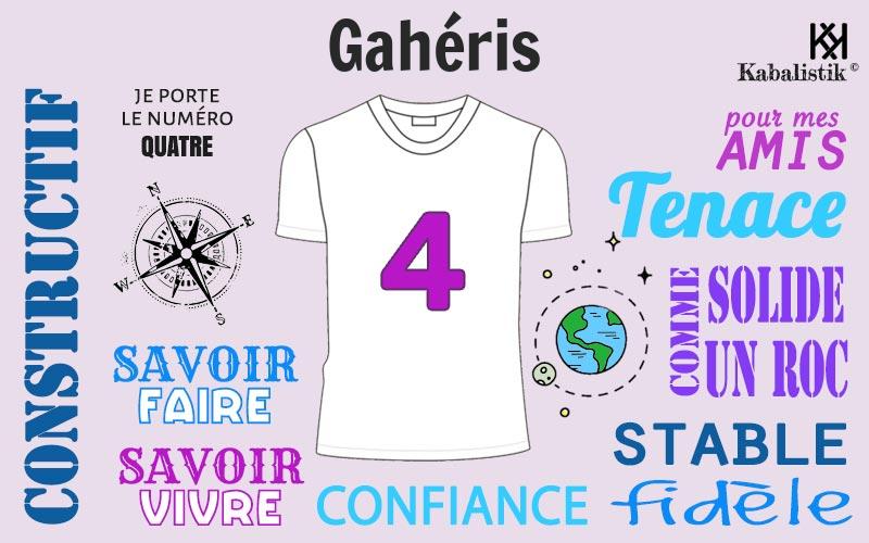 La numérologie attribue le nombre 4 au prénom Gahéris. Découvrez sur cette page comment, et quelle signification y est associée.